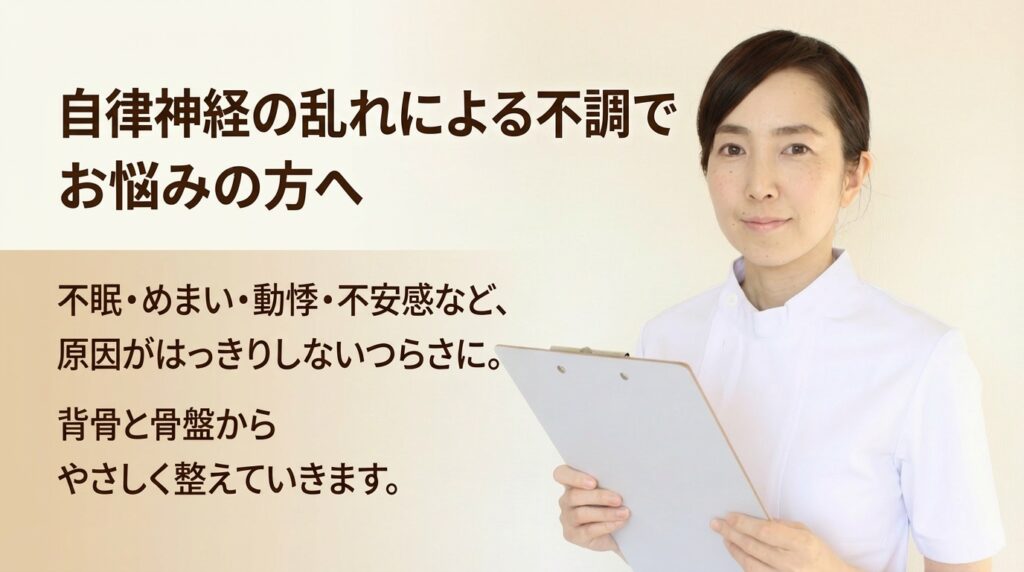 なんとなく疲れが取れない、眠っても回復しない、気分の浮き沈みがある——自律神経の乱れは、目に見えない不調として日常生活に大きく影響します。整体的な視点では、自律神経は骨盤と深い関係があると考えられています。